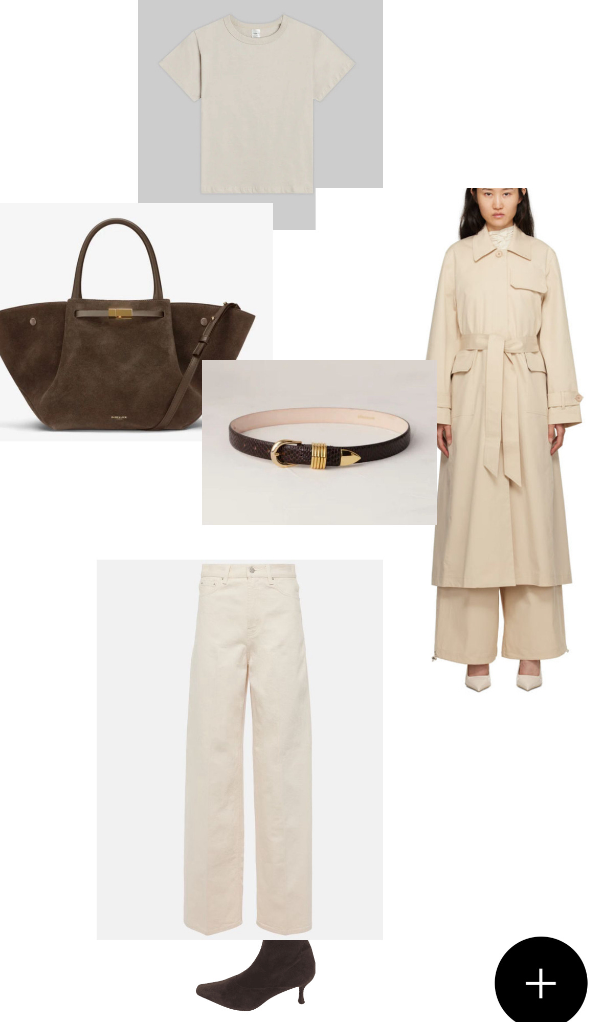 Beaufille coat, Le Set tee shirt, Demellier bag, Dehanche belt, Toteme jeans, Stuart Weitzmann boots