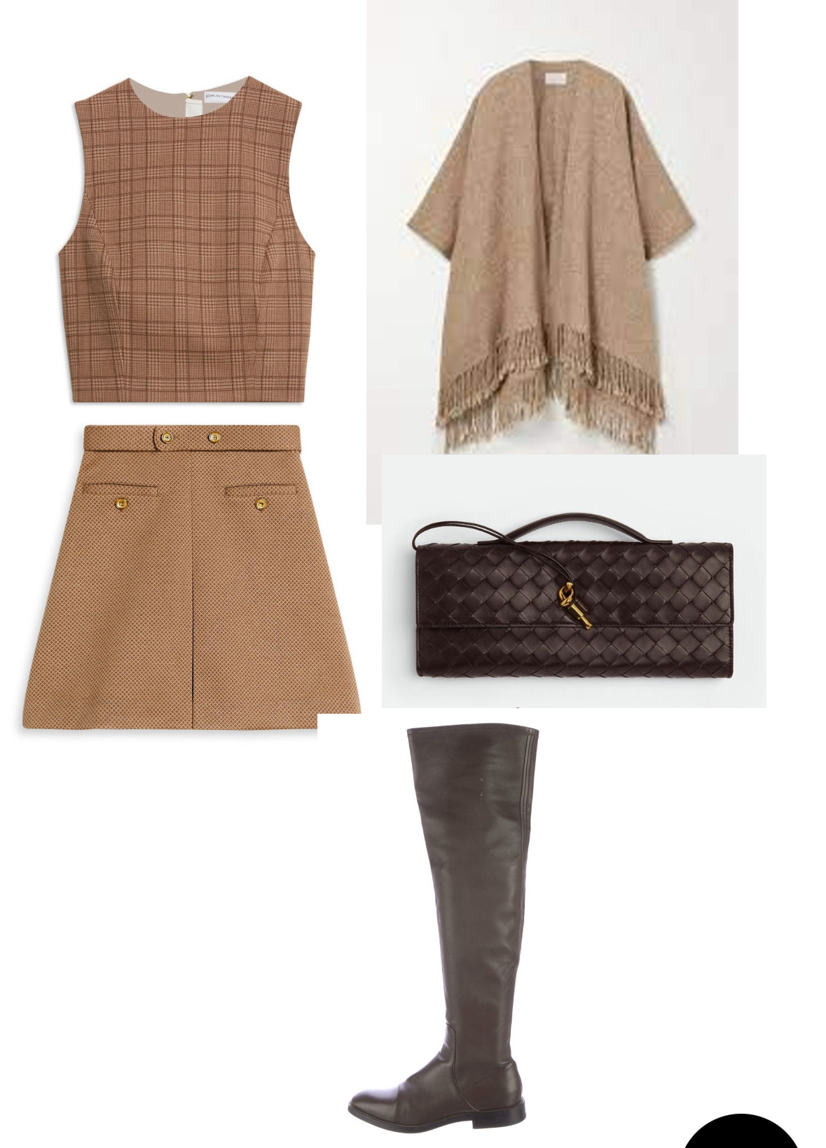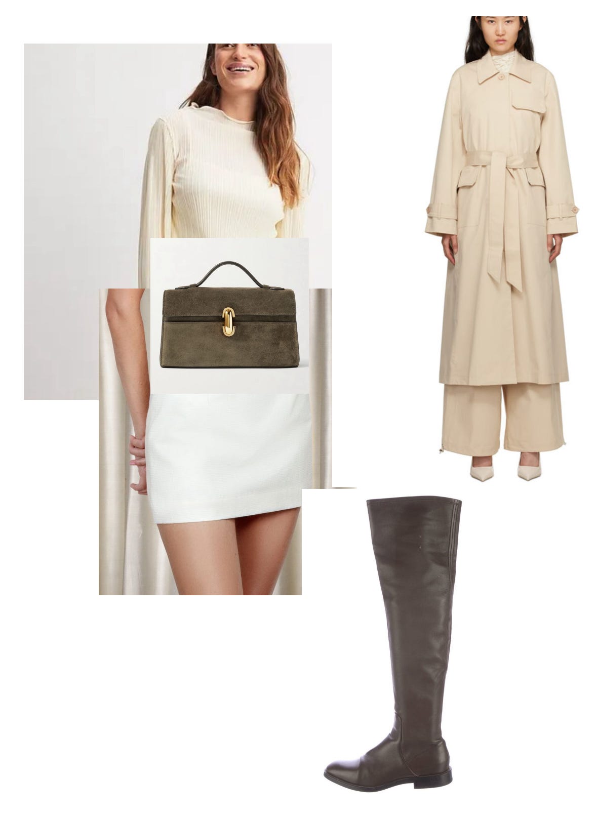 Beaufille coat, Sullivan skirt, Na-Kd blouse, Savette bag, Brunello Cucinelli boots