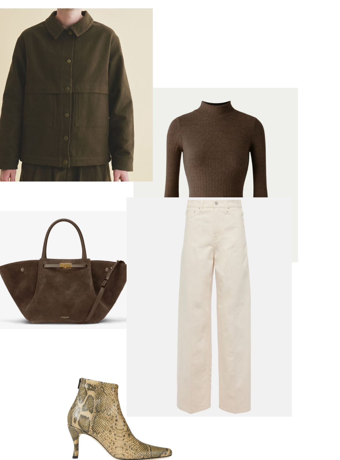 Rohe blouse, Toteme jeans, Brother Vellies heels, Savette bag, Beaufille coat