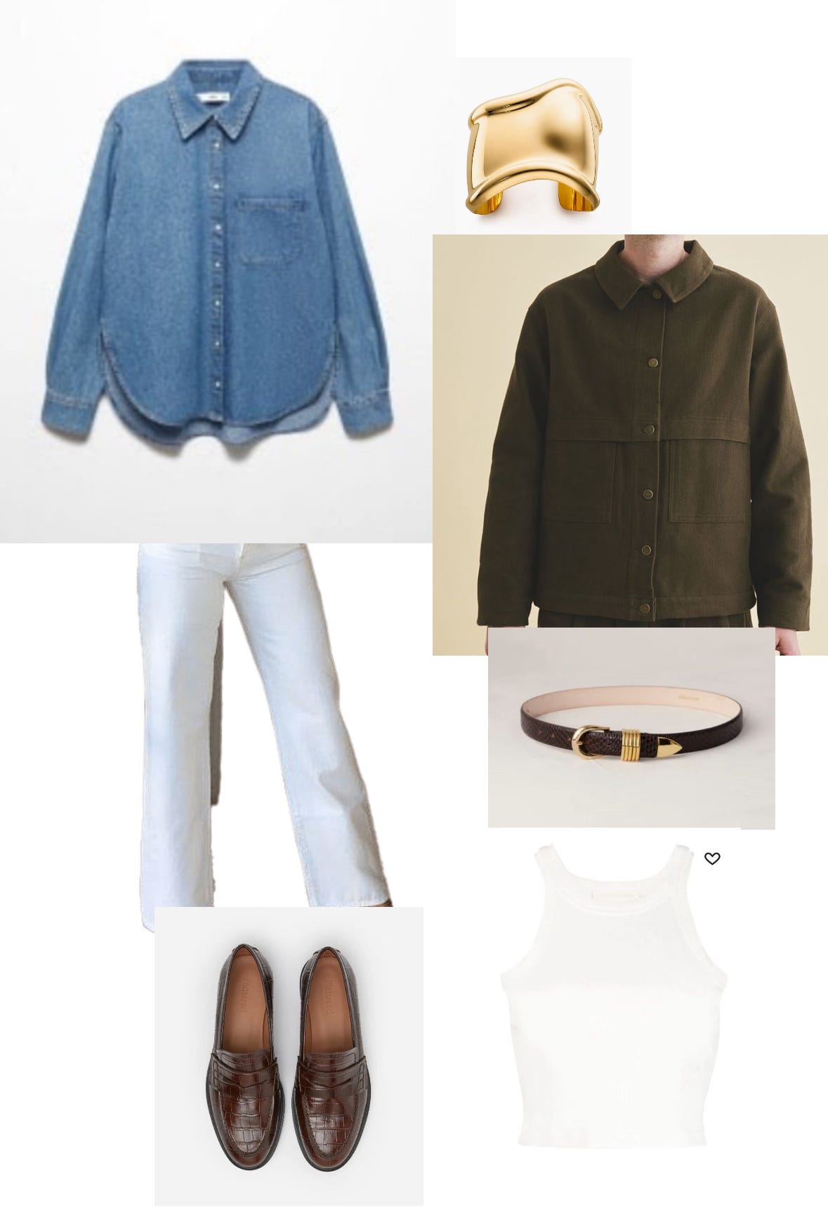 Sezane shirt (similar), Citizens of Humanity jeans, Flattered loafers (50% off!), Bandier tank, Dehanche belt, Good Good Good jacket, Elsa Peretti cuff