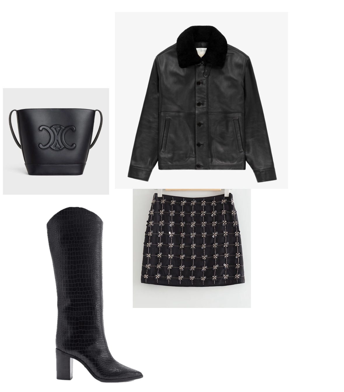 Celine bag, & Other Stories skirt, Aime Leon Dore jacket (similar), Schutz boots