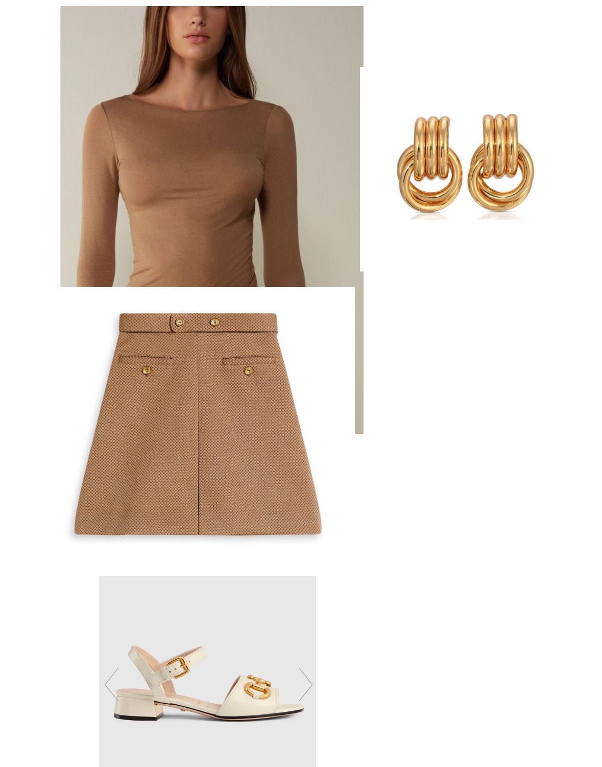 Intimissi top, Heaven Mayhem earrings, Scanlan Theodore skirt, Gucci heels