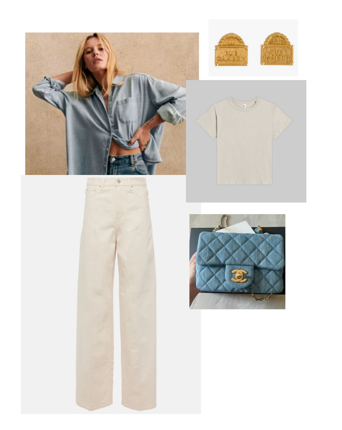 Sezane shirt, Toteme jeans, Le Set tee shirt, Chanel earrings (similar), Chanel bag
