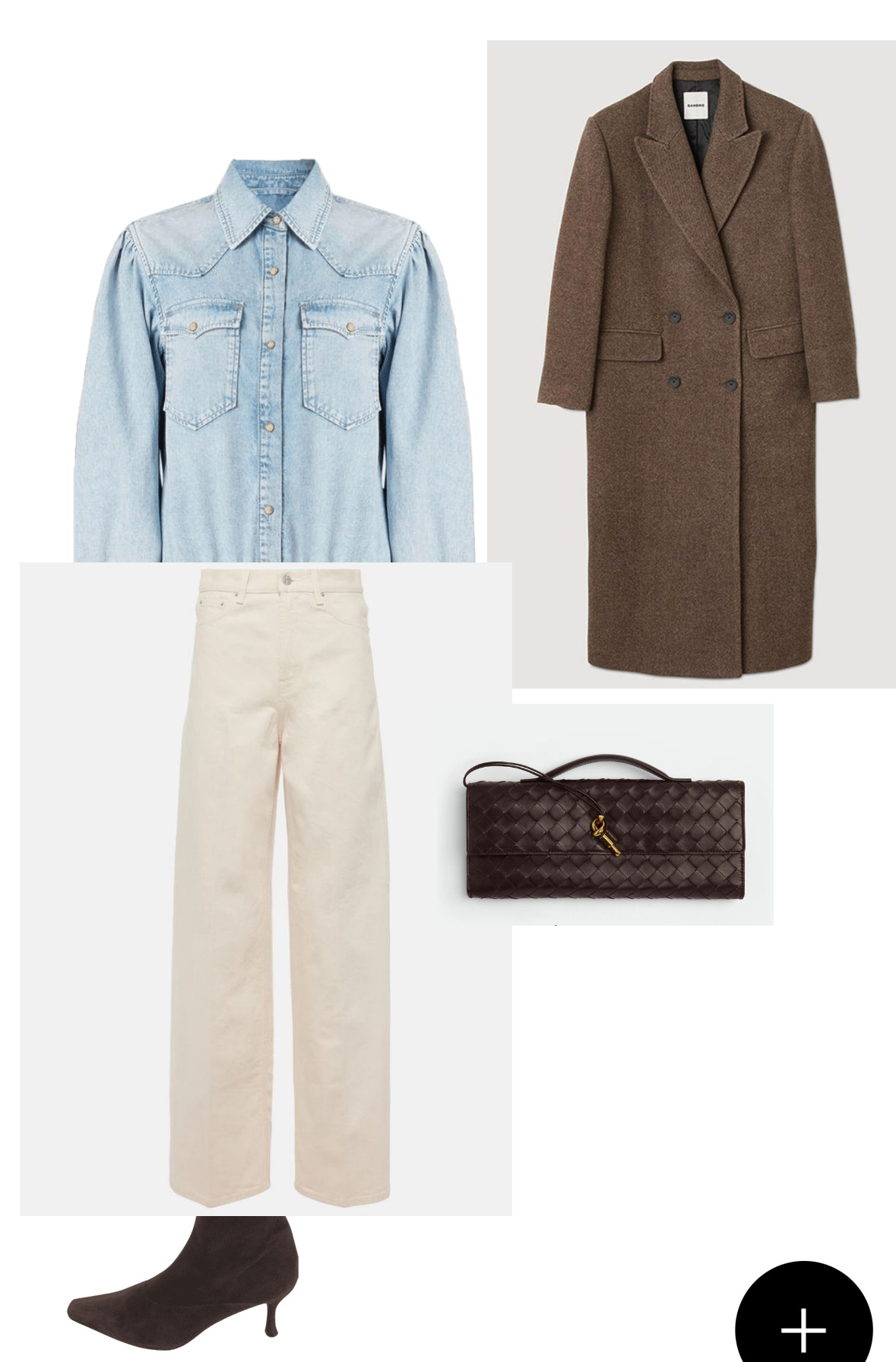 AllSaints shirt, Toteme jeans, Stuart Weitzmann boots, Bottega Veneta bag, Sandro coat
