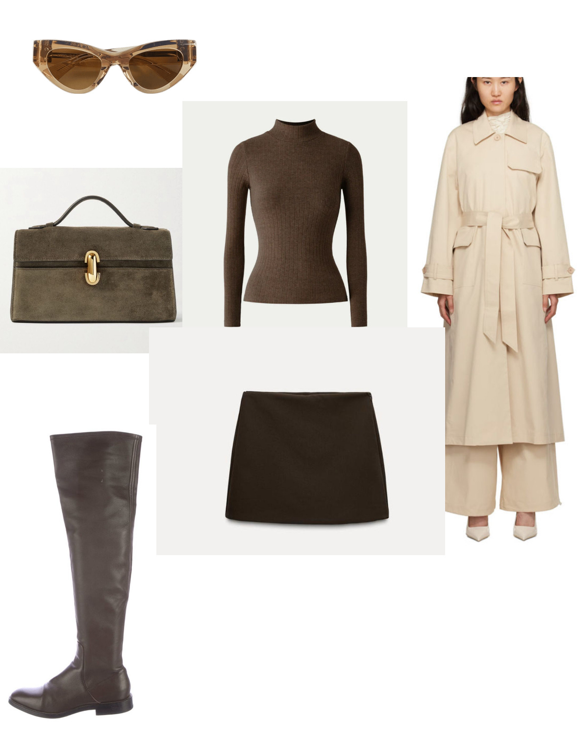 Beaufille coat, OGL shirt, Zara skirt, Brunello Cucinelli boots (similar), Savette bag, Bottega Veneta sunglasses (similar)