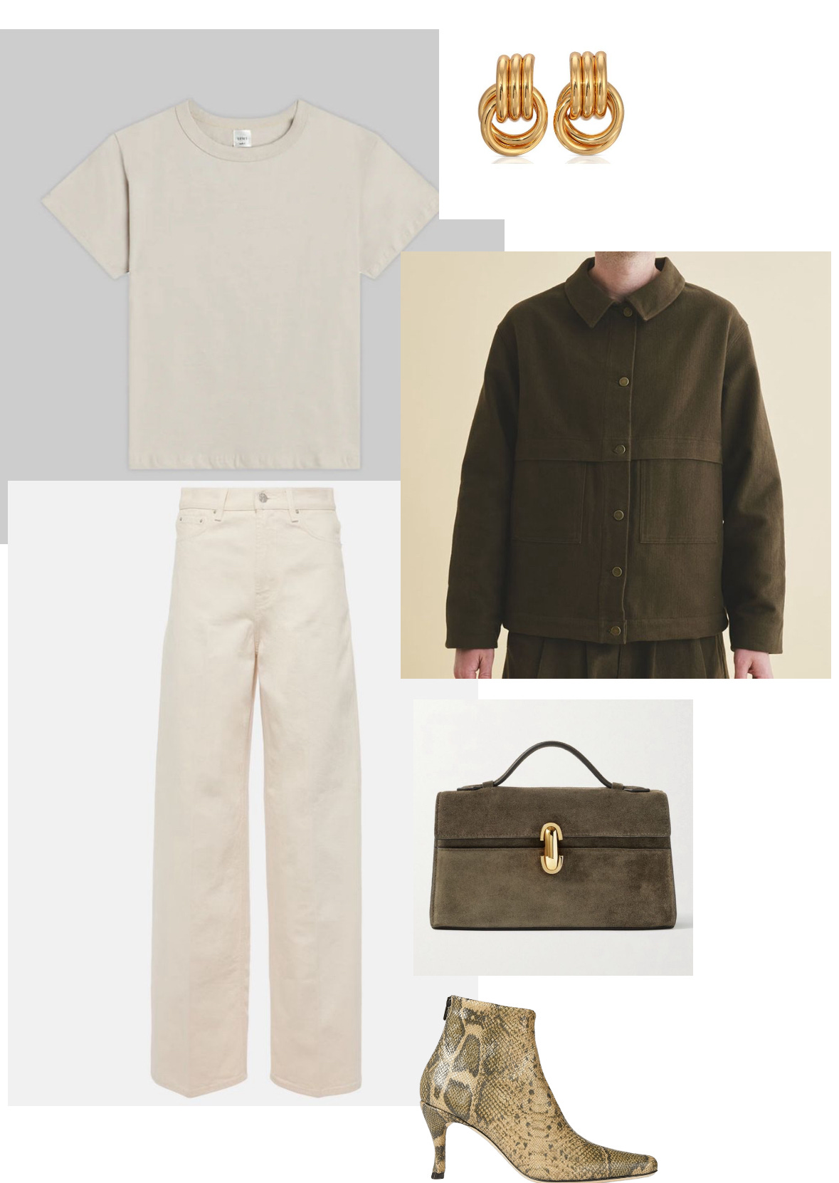 Good Good Good jacket, OGL top, Toteme jeans, By Far booties (similar), Demellier bag