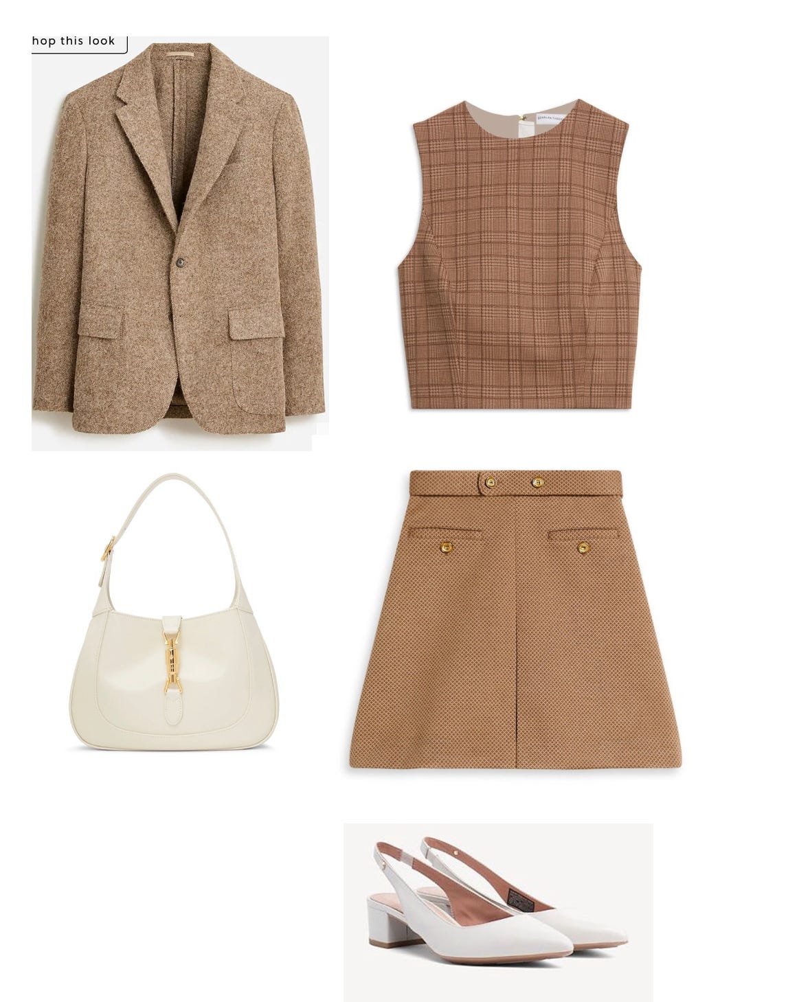 Vintage blazer, Scanlan Theodore top, Scanlan Theodore skirt, Tommy Hilfiger heels, Gucci bag