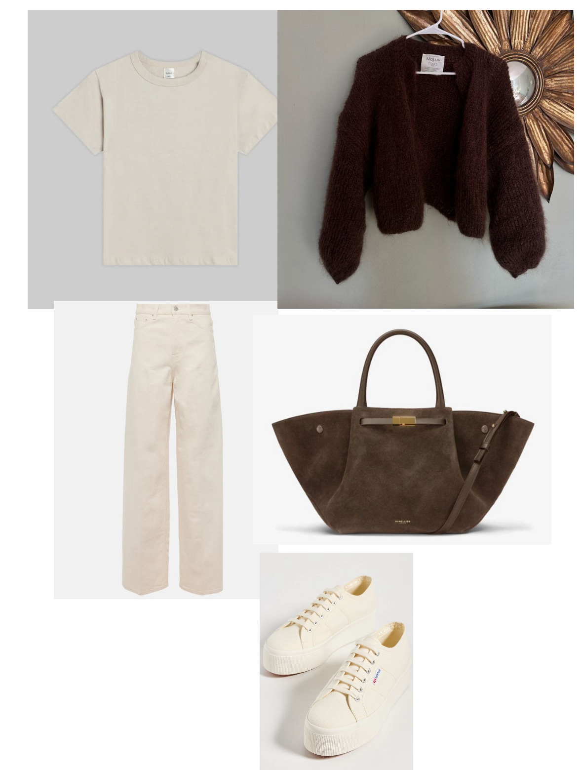 Le Set tee, Toteme jeans, Mors sweater, Demellier bag, Superga sneakers