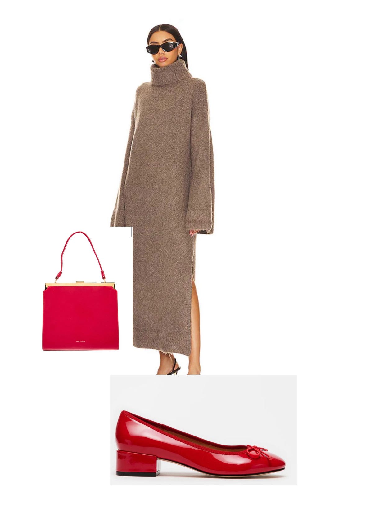 J Crew necklace, Target dress, MoLuv sweater, Demellier bag, Flattered loafers